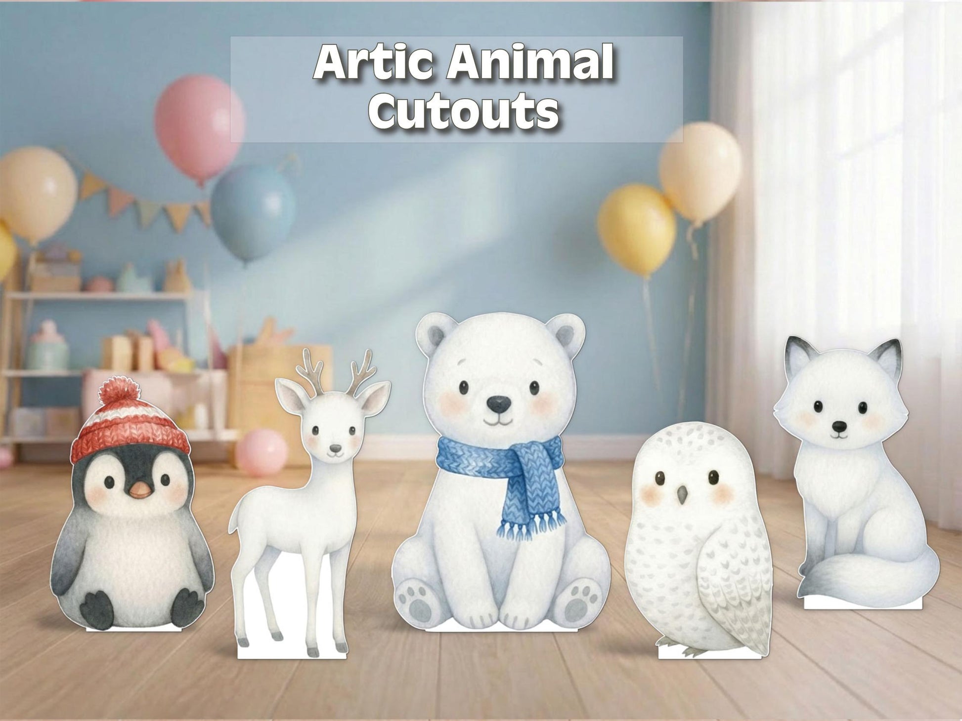Arctic Animal Cutouts | Polar Bear, Penguin, Fox, Owl | Winter Wonderland Party Decor | Baby Shower & Birthday Decorations