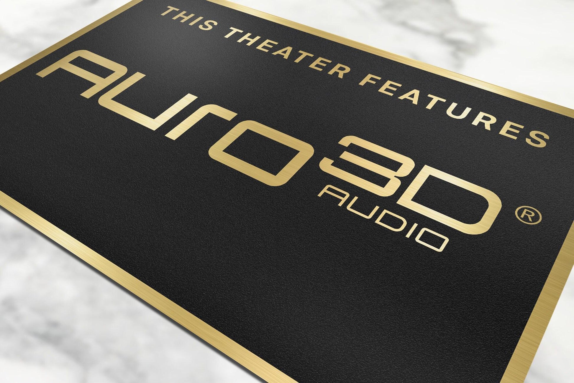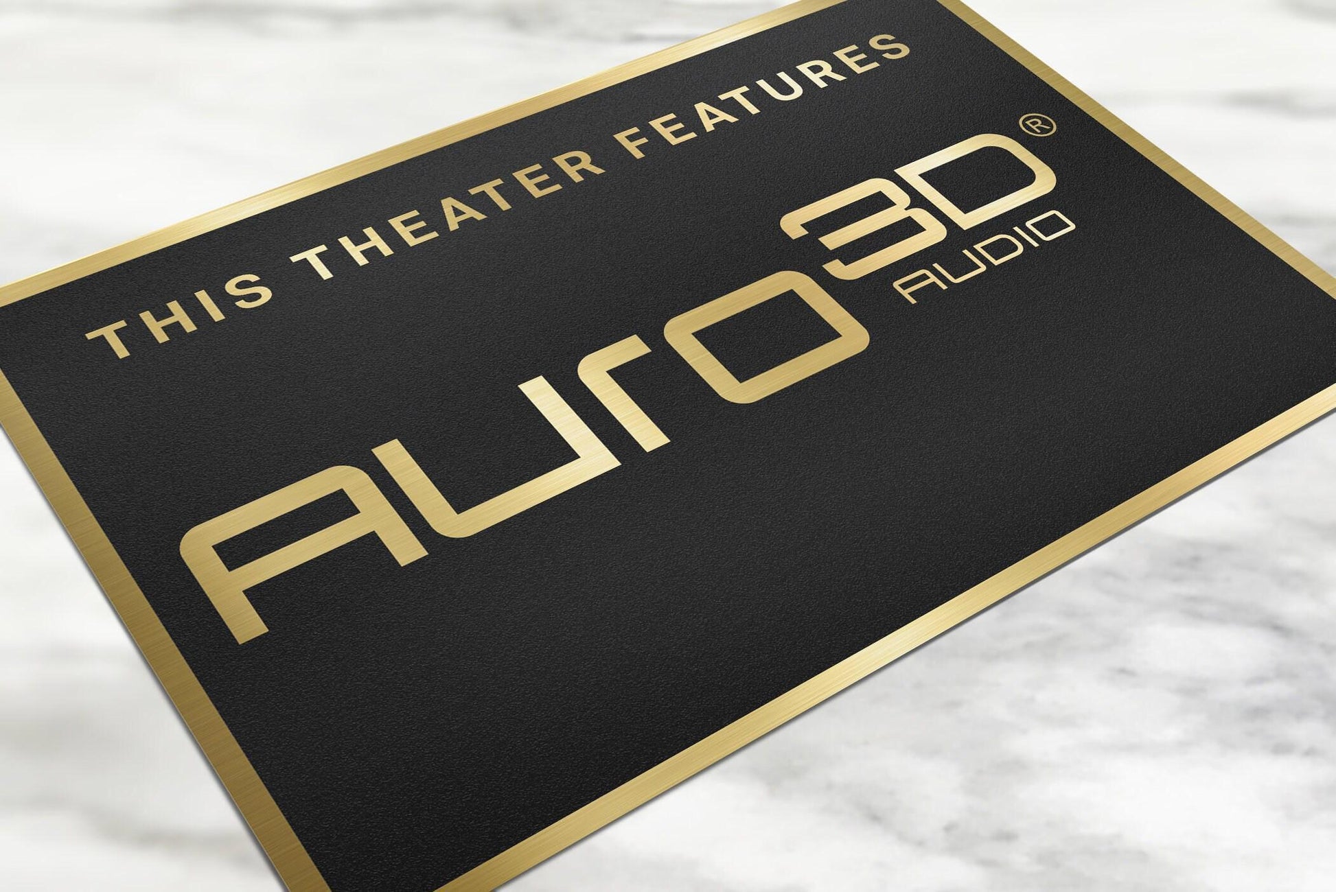 Auro3D Home Theater SignCustom made home theater signs. Perfect for your home theater/ man-cave setupOur signs are made out of brushed gold aluminumWe include double-sided 3M tape for easy hanging just about anywhereSize - 12inch x 8inchour signs are custom made in the USAWe have very fast shipping and offer money back guaranteeDo not see a sign you need, let us know and we can custom make it for you